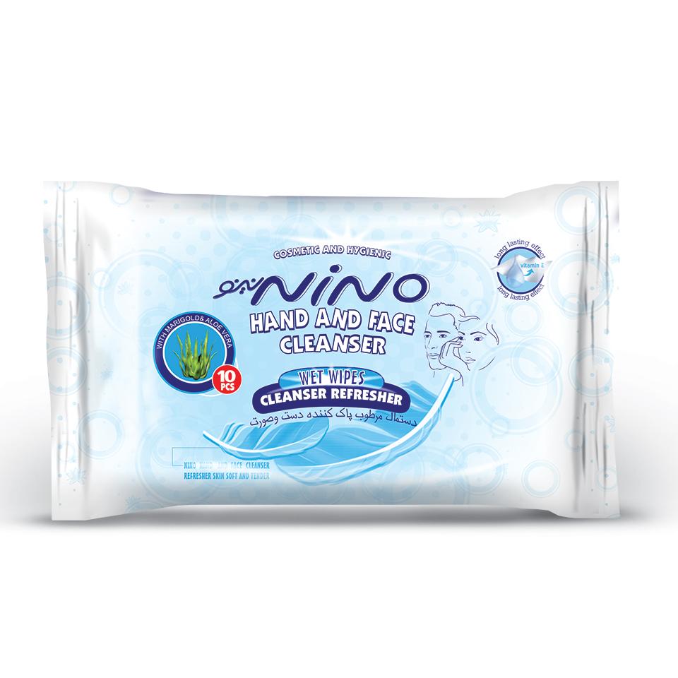 دستمال مرطوب نینو- پاک کننده دست و صورت 10 عددی